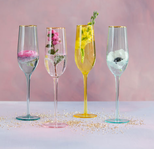 Negroni Hammered Stemless Flute w/ Gold Rim