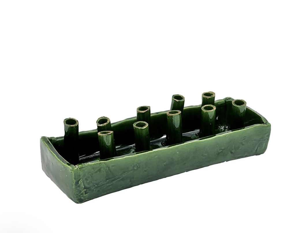 Ceramic Rectangular Boat Tulipiere Green 8 Hole