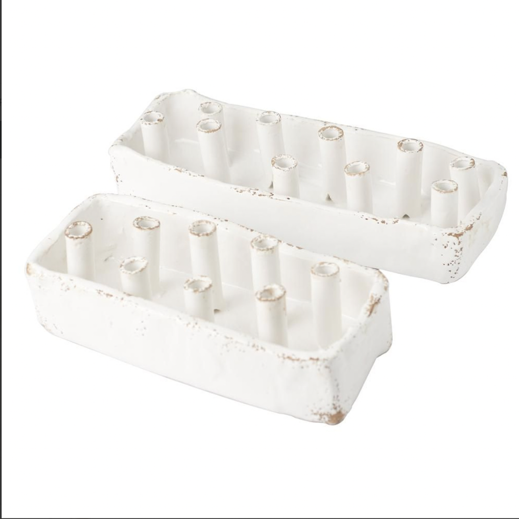 Ceramic Rectangular Boat Tulipiere White 10 Hole