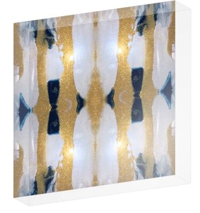 "Holiday Gold & Blues" Acrylic Art Block 4x4