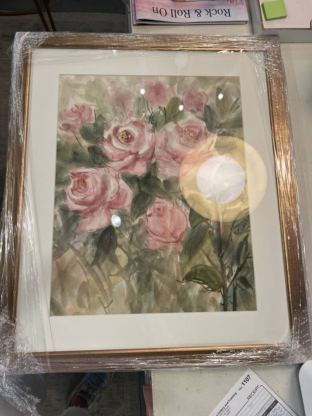 Pink Rose Watercolor 26 1/3Lx22 1/3 with frame